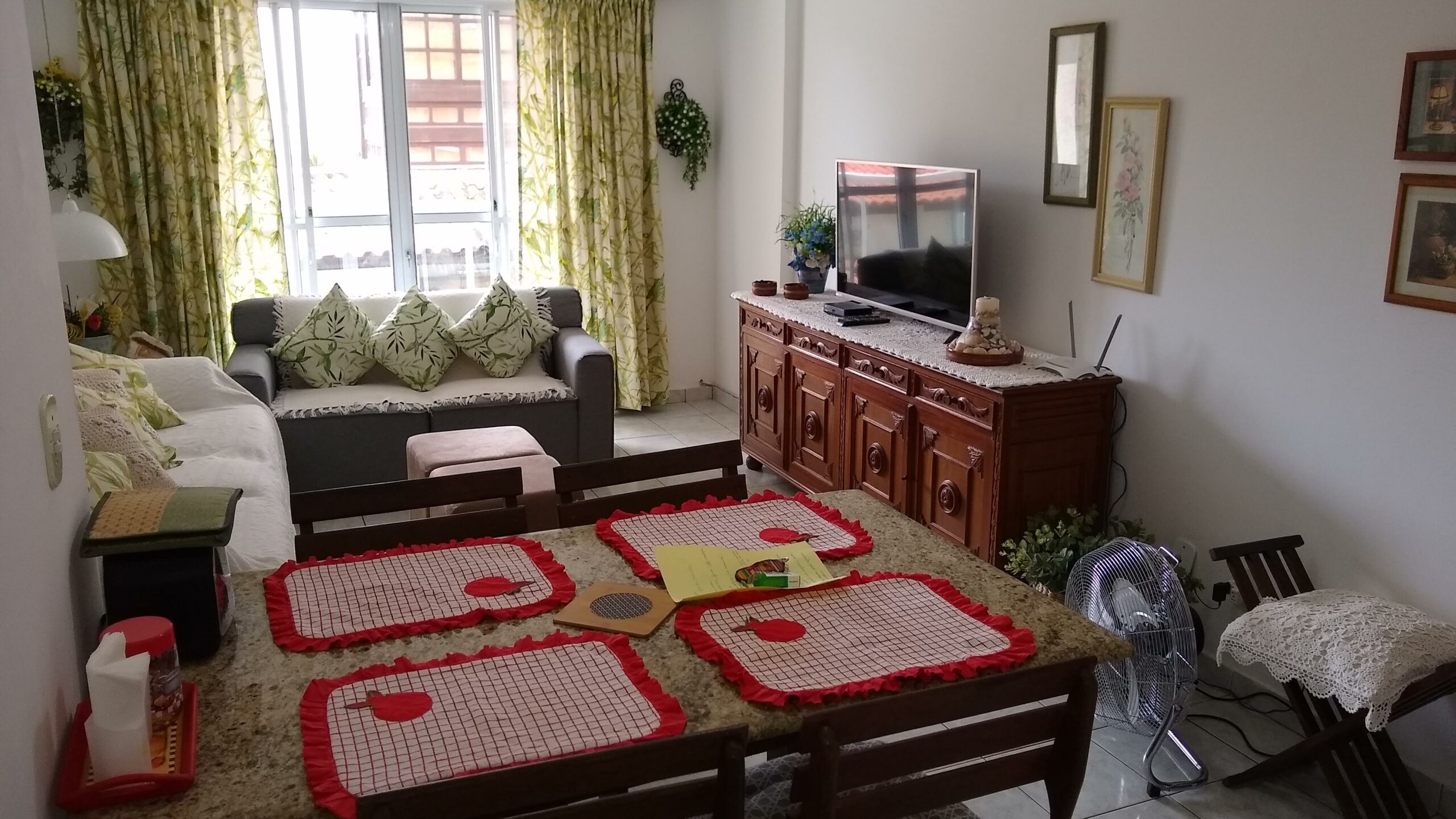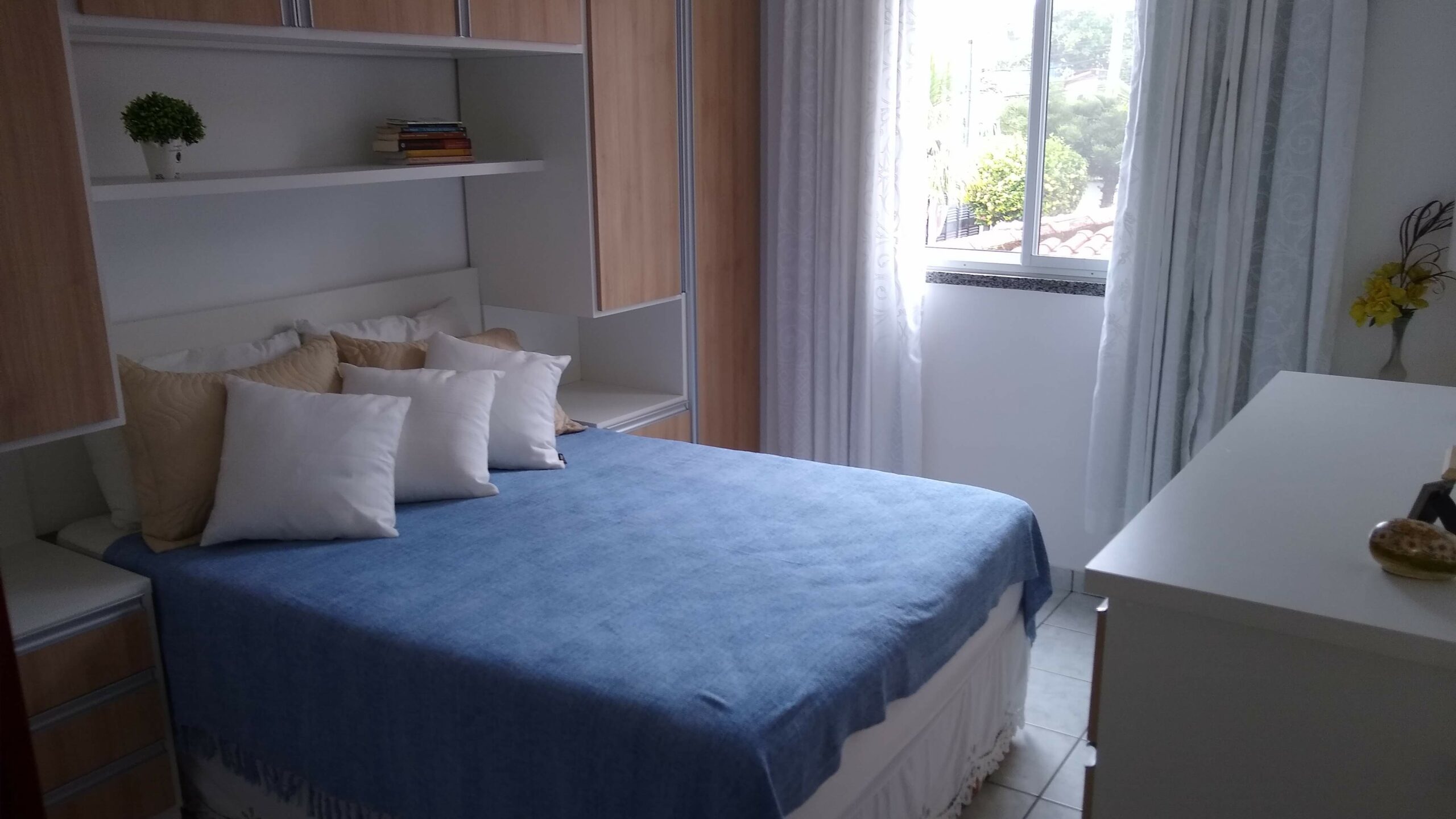 IMÓVEL: saleta, copa cozinha, cozinha, banheiro social, dois quartos sendo um suíte, área de serviço, varanda, SOMENTE COM MOBÍLIA, garagem para dois carros.