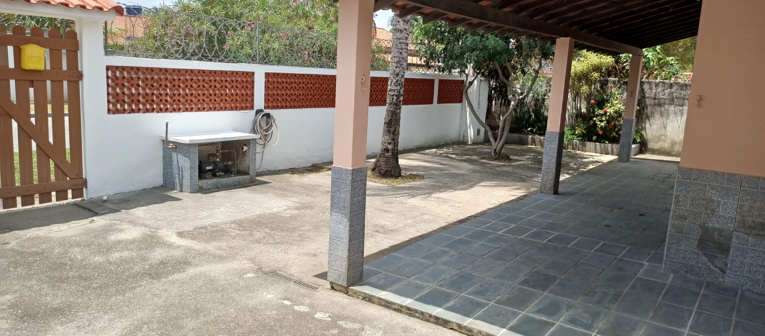 IMÓVEL: Quintal com estacionamento para vários carros, varanda, área de serviço, churrasqueira, sala com sofá de alvenaria, banheiro social, três quartos sendo um suíte, quarto de ferramentas, cozinha, água de poço artesiano. SÓ COM A MOBÍLIA.